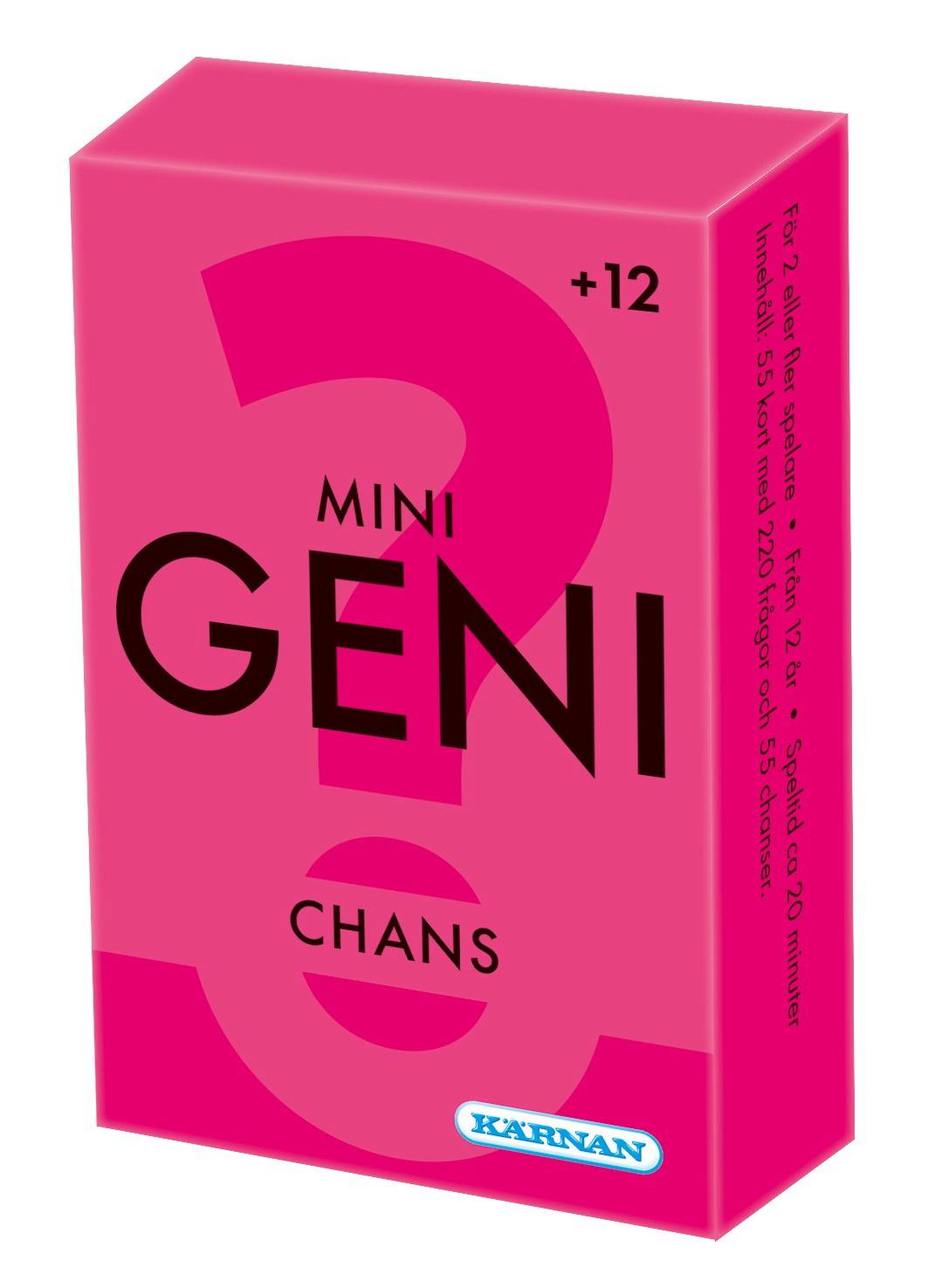 Ta med det klassiska frågespelet GENI överallt – nu i ett smidigt, kompakt format! Spelet innehåller 55 kort med totalt 220 kluriga frågor. Varje kort har fyra frågor plus en spännande “Chans”-utmaning som kan vända hela spelet.
