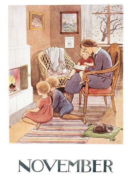 Fina vykort i A6-format med Beskows månadsmotiv - November. Perfekta att skicka som hälsning, använda som dekoration eller rama in som en liten tavla.