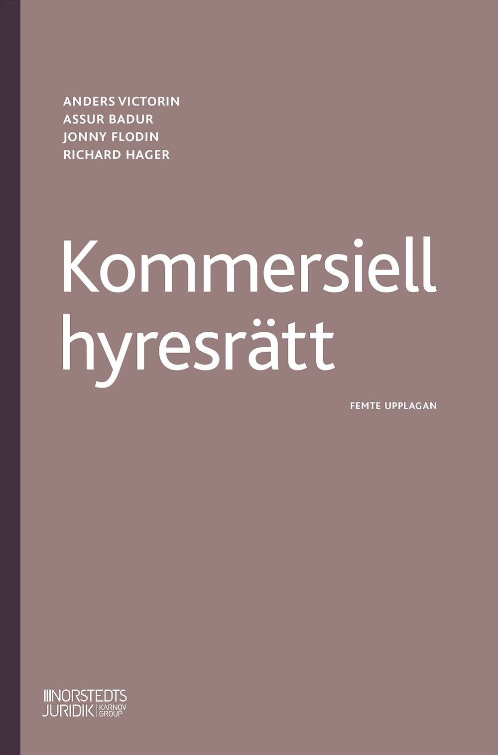 Kommersiell hyresrätt behandlar de viktigaste frågorna om lokalhyra. Boken är avsedd kunna användas i undervisningen vid universitet, men den vänder sig också till praktiker och diskussionen har anpassats till detta syfte. Boken vänder sig särskilt till hyresgäster och hyresvärdar som har intresse av lokalhyresfrågor. Den ger en fyllig diskussion av besvärliga frågor, t.ex. reglerna om besittningsskydd och skadestånd i lokalhyresförhållanden. Vidare behandlas vissa speciella företeelser inom området, t.ex. fastighetsleasing och hyra samt lokaler som kreditobjekt.