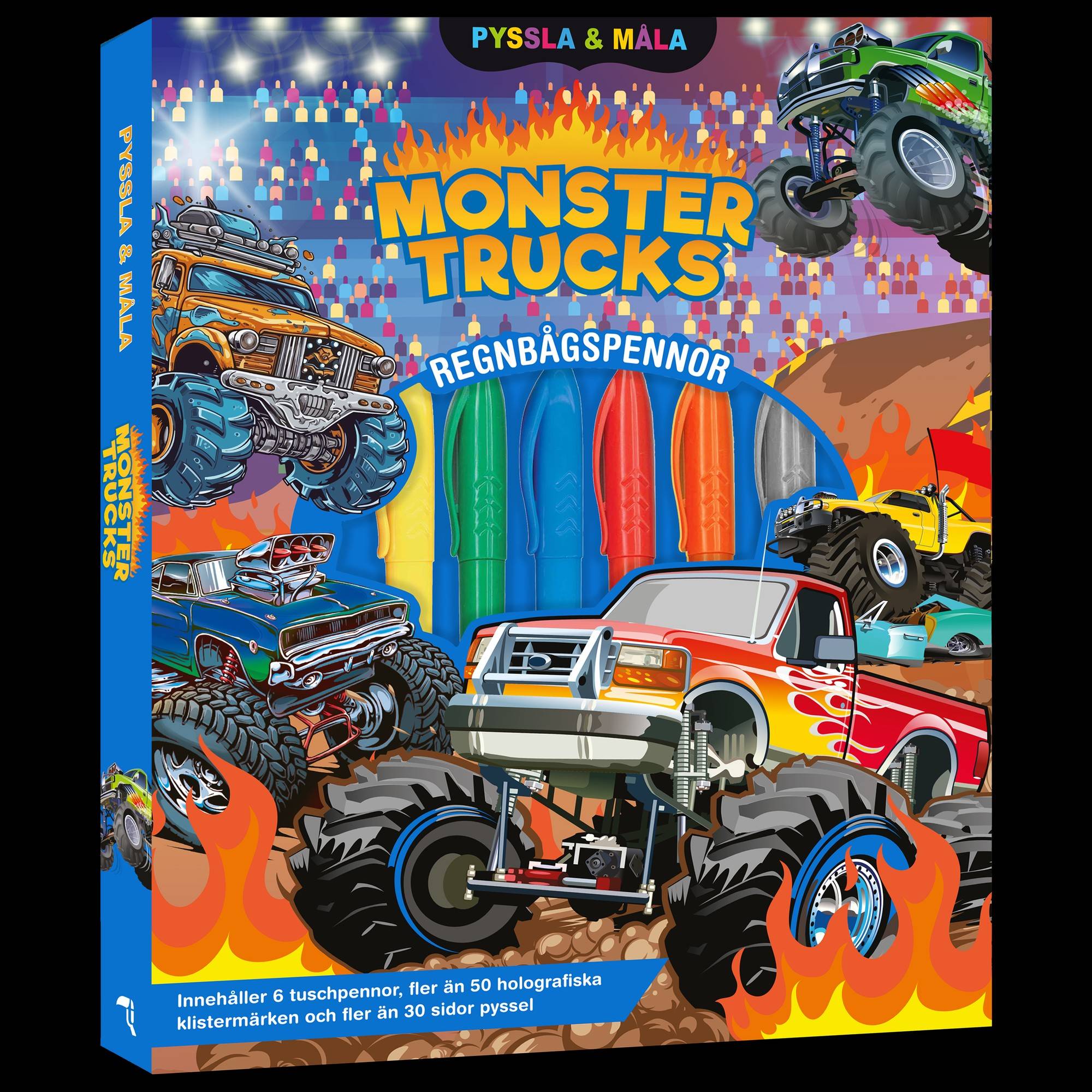 Klara, färdiga, måla! Den här pysselmålarboken innehåller allt man behöver för en lyckad pysselstund. Använd tuschpennorna och färglägg de coola bilderna. Pynta sidorna med fler än 50 olika klistermärken!