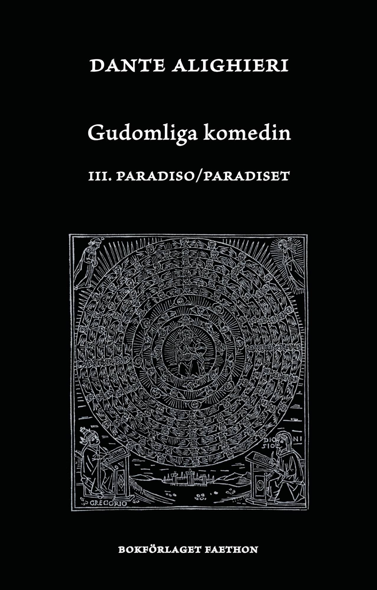 Här föreligger verket i översättning av professor Ingemar Boström (1923-1994) i en interlinjär översättning med det italienska originalet parallellt med den svenska översättningen. Översättningen gjuter liv i Dante på ett sätt genom att ligga nära den dantska stilen. Det är en gudomlig komedi som aldrig tidigare setts på svenska. Den tredje delens sista sånger översattes av Bo Bergman efter att Ingemar Boström gått bort.