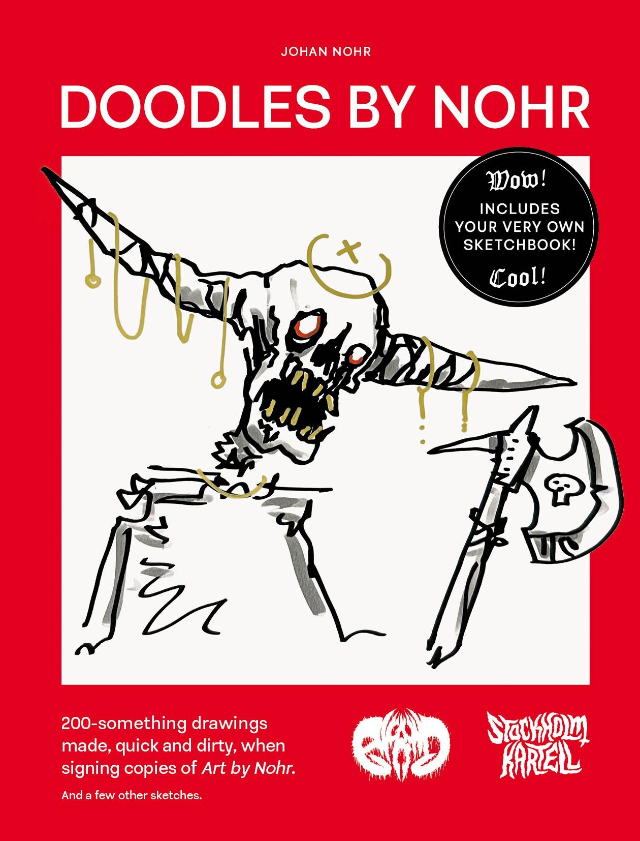 DOODLES BY NOHR is a 264-page artbook collecting ~200 sketches and wobbly doodles of skeletons, demons, nasty monsters and corpses-to-be in medieval armor, unceremoniously drawn by Johan Nohr of MÖRK BORG infamy when signing the big-ass art book Art by Nohr. Johan also writes about drawing, creativity, pens and prepping TTRPG sessions. And! This book includes a sketchbook so that you can make skeletal sketches and wobbly doodles of your very own. 264 pages, 160×210mm (6,3×8,2″), softcover, colored edges.